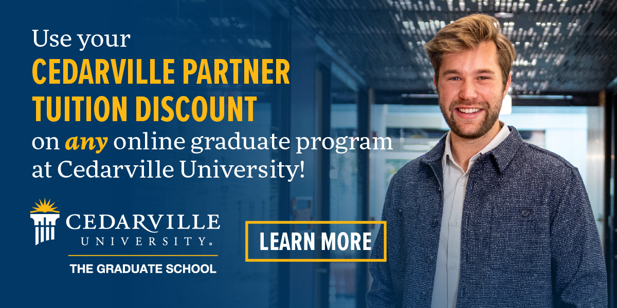 We want to encourage our employees to pursue additional education to help you take the next step in your career. To help accomplish this, we’ve partnered with Cedarville University to offer you excellent, Christian, online graduate programs or residential MDiv program at a discounted price.