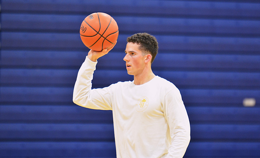 Student shooting a basketball